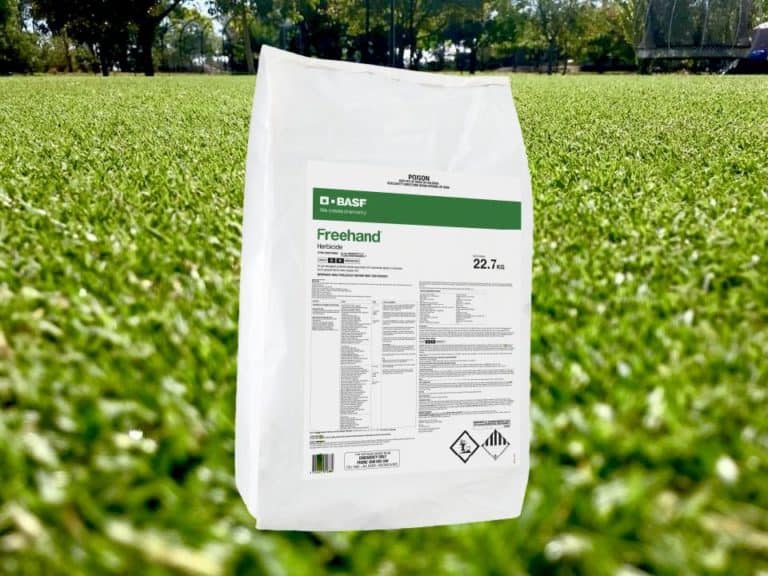 Freehand Herbicide 22.7kg - Granular Pre Emergent - Lawn Addicts Freehand herbicide offers the ornamental grower and turf manager a new tool for pre-emergent weed control of broadleaf and grassy weeds. Its two unique active ingredients, pendimethalin and dimethenamid-P, prevent weeds from growing and multiplying by inhibiting cell growth in seedling shoots and impeding plant cell microtubule assembly in roots.