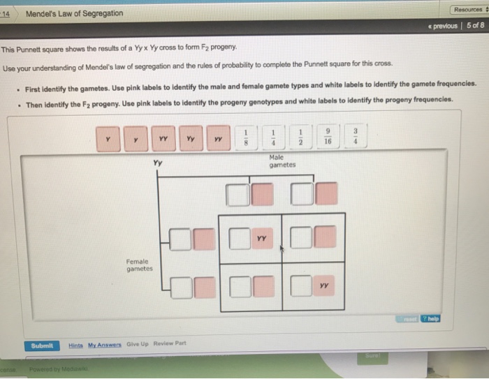 Punnett Square - an overview | ScienceDirect Topics Punnett squares can be used to examine any number of alleles. For example, a system having three alleles A, B, and C, with allele frequencies p, q, and r, respectively, will have the following Punnett square: The sum of genotype frequencies for this three-allele system is p 2 + q 2 + r 2 + 2 p q + 2 p r + 2 q r = 1.0 Solved Use the Punnett Square interactive to help label the - Chegg Expert Answer. Who are the experts? Experts are tested by Chegg as specialists in their subject area. We review their content and use your feedback to keep the quality high. Transcribed image text: Use the Punnett Square interactive to help label the Punnett square. offspring genotype gamete genotype Answer Bank parental genotype Incorrect. Drag the labels to their appropriate locations to complete the Punnett ... Drag the labels to their appropriate locations to complete the Punnett square for Morgan's F1x F1cross. Drag pink labels onto the pink targets to indicate the alleles carried by the gametes (sperm and egg). Drag blue labels onto the blue targets to indicate the possible genotypes of the offspring. Peas, the ABC's, and the Punnett Square {Plus a FREE printable ... This Punnett square shows us that these parents have: a 50% chance of producing a dominant tall offspring, a 50% chance of producing a hybrid tall offspring, and a 0% chance of producing a recessive short offspring. And this is how geneticists can use the Punnett square to predict what traits an offspring will have.