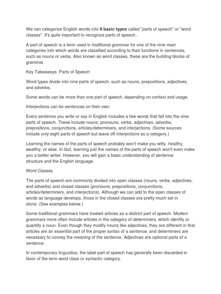 The 9 Parts of Speech: Definitions and Examples - ThoughtCo Every sentence you write or speak in English includes words that fall into some of the nine parts of speech. These include nouns, pronouns, verbs, adjectives, adverbs, prepositions, conjunctions, articles/determiners, and interjections. (Some sources include only eight parts of speech and leave interjections in their own category.) Labeling Parts Of Speech Worksheet Teaching Resources | TpT Parts of Speech: Labeling Sentences by The Adaptive Teacher 22 $1.50 PDF Provide your students with opportunities to practice labeling parts of speech within sentences. The parts of speech included in worksheets are nouns, verbs, adjectives, and adverbs. These worksheets are great for independent and guided practice. Labeling Parts Of Speech Teaching Resources - TeachersPayTeachers Parts of Speech Quiz: Labeling Sentences and Matching Definitions This parts of speech quiz assesses knowledge of the 9 parts of speech: noun, pronoun, adjective, verb, adverb, preposition, conjunction, interjection and article. This quiz can be used from elementary school through high school. Part I Match terms and definitions Part II Label ... The 8 Parts of Speech: Examples and Rules | Grammarly Blog The 8 parts of speech 1. Nouns A noun is a word that names person, place, concept, or object. Basically, anything that names a "thing" is a noun, whether you're talking about a basketball court, San Francisco, Cleopatra, or self-preservation. Nouns fall into two categories: common nouns and proper nouns.
