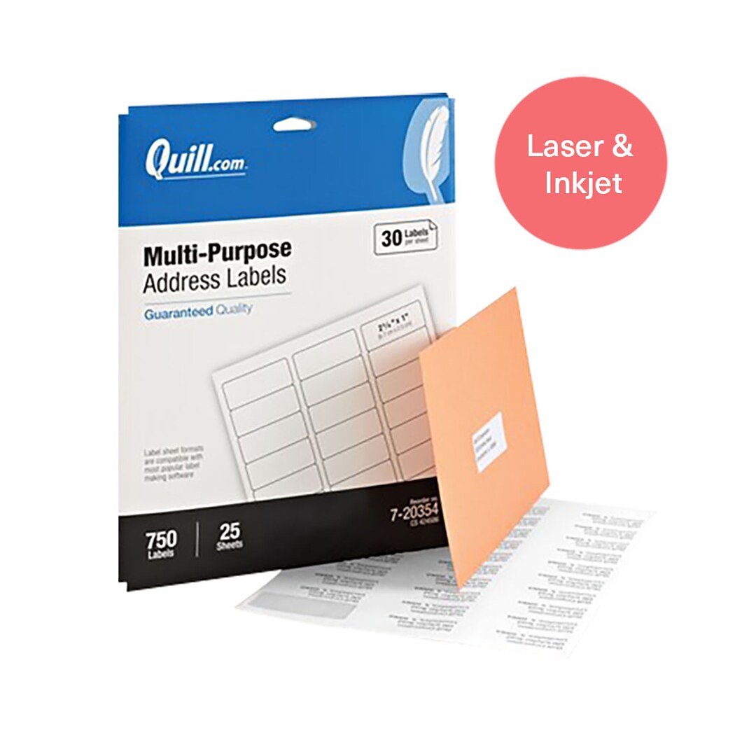 Quill Brand® Laser/Inkjet Address Labels, 1" x 2-5/8", White, 750 Labels (Compare to Avery 5160, 5260 & 8160)