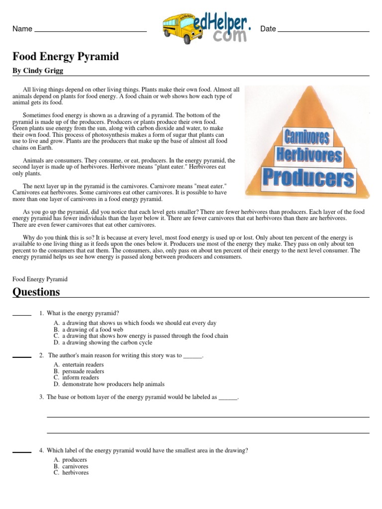 Energy Pyramid Concept & Examples | What is an Energy Pyramid ... An energy pyramid is a diagram that shows the transfer of energy in an ecosystem. An energy pyramid shows which levels in the ecosystem have more energy by locating them lower, and thus with larger...