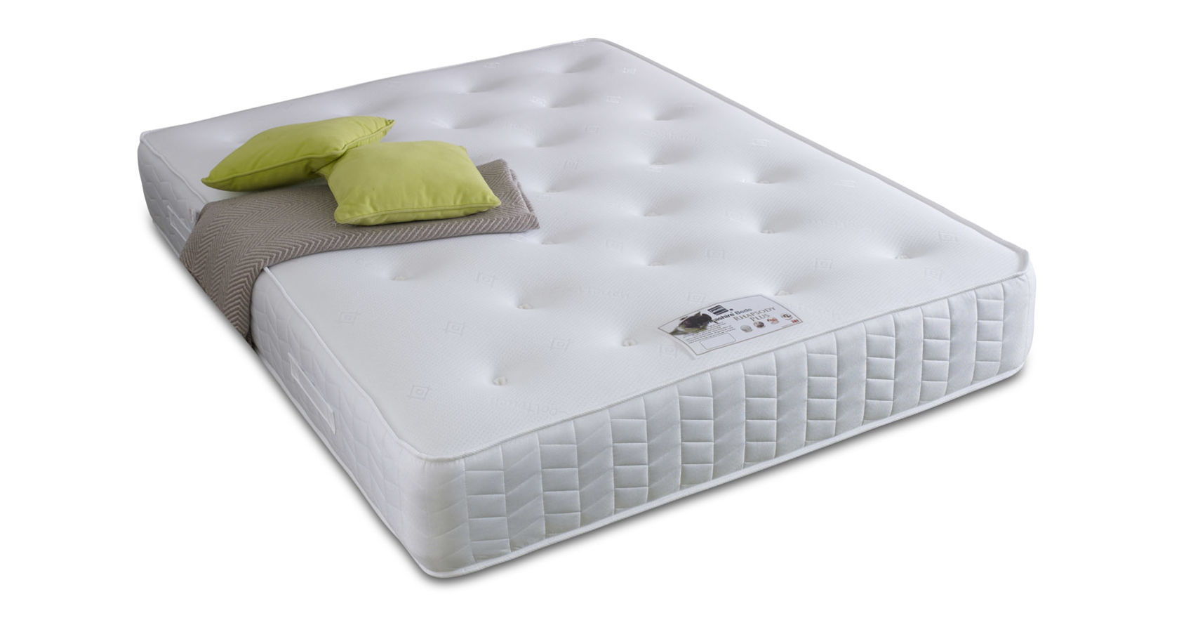Gold Label 4'6 Mattress. Display Models Reduced to Clear It provides superior lateral support through its 1000 individual springs, each one held in place by its own sewn pocket. Gold label mattresses are vented and have two handles each side for recommended occasional turning. Hand tufting comes as standard on all sizes in the range. 1000 pocket springs. Vented for breathability. Hand tufted. Turnable.