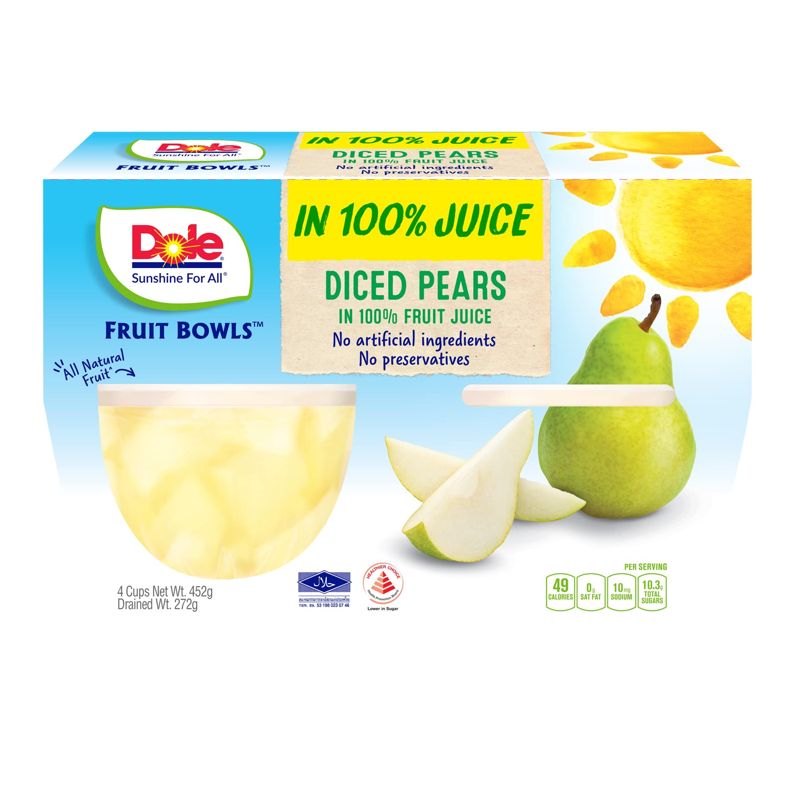 (4 Pack) Dole Tropical Fruit Cups in 100% Fruit Juice, 4 oz - Walmart.com Calories per gram: Fat 9 • Carbohydrate 4 • Protein 4 ... Now you can easily enjoy more fruit and sunshine every day in a convenient fruit in a cup. DOLE FRUIT BOWLS Tropical Fruit in 100% Fruit Juice are made from the best sun-ripened fresh fruit that nature has to offer, and are non-GMO and gluten free. Calories in Dole Jello Fruit Cup and Nutrition Facts 23g. Protein. 0g. There are 90 calories in 1 cup of Dole Jello Fruit Cup. Calorie breakdown: 0% fat, 100% carbs, 0% protein. Diced Pears with No Sugar Added 16oz - Dole® Sunshine Each serving contains 45 Calories 0g Saturated Fat 0mg Sodium 7g Sugars Full Nutrition Info Nutrition Information Servings Serving size 1 cup (113g) Servings per container 4 Ingredients PEARS, WATER, NATURAL FLAVORS, ASCORBIC ACID (VITAMIN C) TO PROMOTE COLOR RETENTION, STEVIA EXTRACT, MONK FRUIT EXTRACT, AND CITRIC ACID. Features & Benefits Are Dole Fruit Bowls Healthy? | Healthy Eating | SF Gate A 70-calorie, 4-ounce serving of Dole Fruit Bowl peaches provides 90 milligrams of potassium, 5 milligrams of sodium and 45 percent of your recommended daily intake for vitamin C. By contrast, the same serving size of sliced, fresh peaches has 44 calories, 214 milligrams of potassium and no sodium. Fresh peaches provide less vitamin C, but they ...