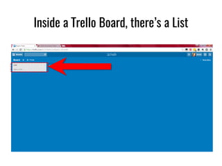 Manage Your Team's Projects From Anywhere | Trello Trello helps teams move work forward. It's more than work. It's a way of working together. Start with a Trello board, lists, and cards. Customize and expand with more features as your teamwork grows. Manage projects, organize tasks, and build team spirit—all in one place. Start doing →. Join over 1,000,000 teams worldwide that are using ...
