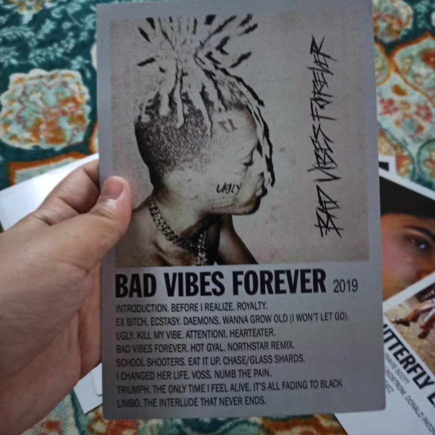 Xxxtentacion - Bad Vibes Forever - Amazon.com Music The album was released on December 6, 2019, and features guest appearances from Lil Wayne, Blink-182, Tory Lanez, Stefflon Don, Mavado, Ky-Mani Marley, Rick Ross, Vybz Kartel, Joey Badass, Trippie Redd and others. Final album from Xxxtentacion Product details Product Dimensions : 17.2 x 5.04 x 0.08 inches; 2.33 Ounces