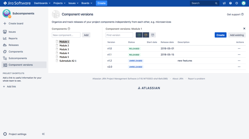 Subcomponents for Jira | Atlassian Marketplace Split and rule a project with Subcomponents Convert project components into a meaningful hierarchy. Enable users to select components from the hierarchy in issues including Customer Portal. Find issues and create reports based on subcomponents hierarchy. Release components independently with Versions