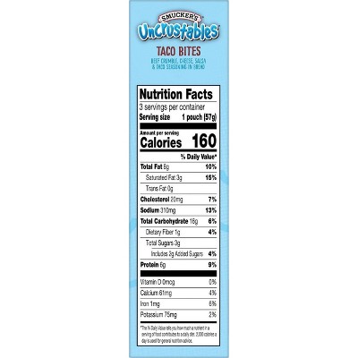 Are Uncrustables Healthy? Everything That You Should Know! Uncrustables contain few, if any, nutrients. it still contains high calories and carbohydrates, with almost no protein. If you have a look at the back cover (and in other food boxes), there are 210 calories and 28g carbohydrates in 1 Sandwich. Is Uncrustables Bad for You? Uncrustables Nutrition Facts | Delicious Sandwich Delight! Best Facts About. Business. Crypto Calories in Smucker's Uncrustables and Nutrition Facts Uncrustables Nutrition Facts Serving Size 1 serving, peanut butter & grape jelly sandwich (80 g) Amount Per Serving Calories 320 % Daily Values* Total Fat 17.00g 22% Saturated Fat 3.500g 18% Trans Fat 0.000g Cholesterol 0mg 0% Sodium 290mg 13% Total Carbohydrate 36.00g 13% Dietary Fiber 3.0g 11% Sugars 14.00g Includes 12.00g Added Sugars 24% Uncrustables® Nutrition Information | Uncrustables® In the Uncrustables ® products available at regular grocery stores, total fat content ranges from 4.5 grams to 14 grams per serving, and saturated fat ranges from 1.5 grams to 6 grams per serving. A two-ounce Uncrustables ® Peanut Butter & Grape Jelly Sandwich contains 9 grams of total fat and 2 grams of saturated fat per serving. Sizes sold at club stores or served through schools have ...