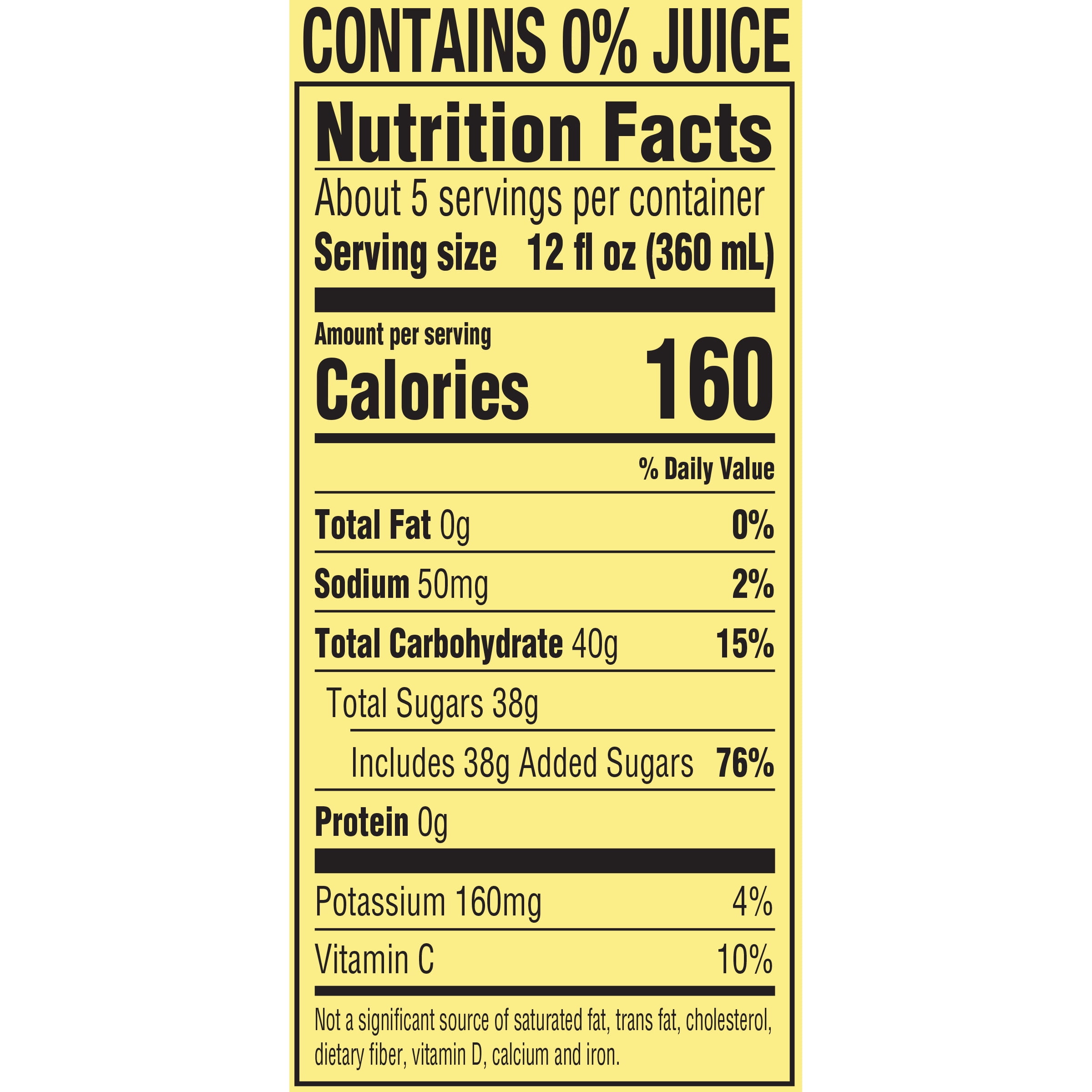Country Time Lemonade Drink Mix - 63 Oz Canister : Target Calories: 100 % Daily Value* Total Fat 0g 0% Sodium 35mg 2% Total Carbohydrate 26g 9% Sugars 24g Added Sugars 24g 47% Protein 0g Vitamin C 10% * Percentage of Daily Values are based on a 2,000 calorie diet. Ingredients: