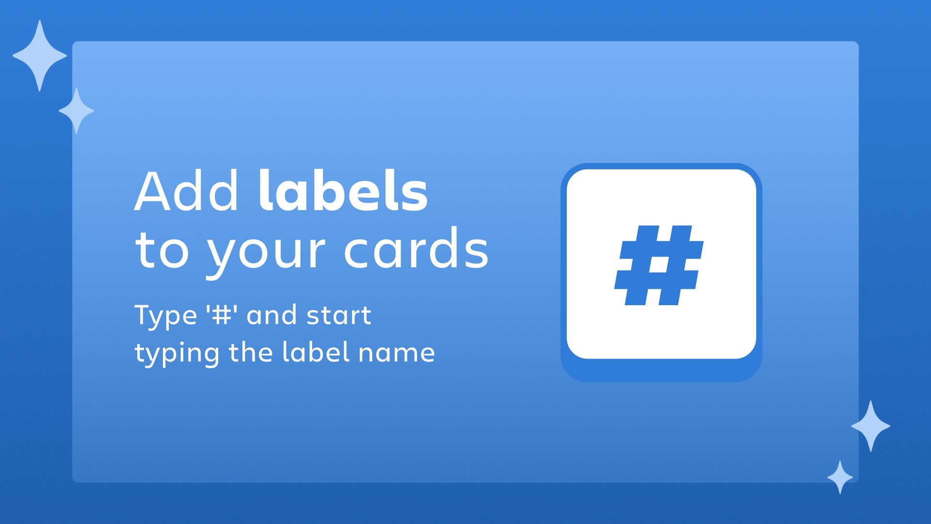 Shortcuts - Trello When adding a new card, you can type "#" plus the label's color or title and get a list of matching You can use the up and down arrows to navigate the resulting list. Pressing enter or tab will add the label to the composed card. The labels will be added to the card when you submit. Autocomplete Position