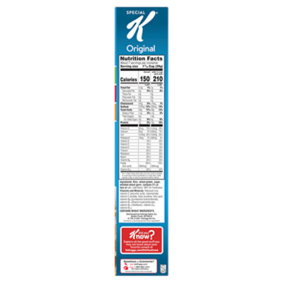 Kellogg's® Special K® Original Cereal - SmartLabel™ Kellogg's® Special K® Original Cereal. 18 oz. 00038000016219. Nutrition . Ingredients . Allergens . Features & Benefits . Company, Brand & Sustainability . 150. Calories. 0 g. Sat Fat. 270 mg. Sodium. 5 g. ... *The % Daily Value (DV) tells you how much a nutrient in a serving of food contributes to a daily diet. 2,000 calories a day is used ... Nutrition Label Updates - Special K Many Special K variants now feature a blend of vitamins that people don't get enough of, including vitamin C, E, D and A. Special K Protein specifically has a blend of calcium, magnesium and vitamin D, which help protein to do its job better! Is the recipe different? In the midst of label changes, we did optimize some ingredients! Kellogg's® Special K® Strawberry Protein Meal Bars Kellogg's® Special K® Strawberry Protein Meal Bars 4.6 (936) Write a review About this item: Details Nutrition Facts & Ingredients Where To Buy Highlights Don't have time for a sit-down meal? Reach for a Special K® Strawberry Protein Meal Bar. These protein bars are made with pieces of strawberry-flavored fruit dipped in creamy goodness. Kellogg's® Special K® Strawberry Protein Meal Bars Kellogg's® Special K® Strawberry Protein Meal Bars Nutrition Ingredients Allergens Features & Benefits Company, Brand & Sustainability 180 Calories 4 g Sat Fat 170 mg Sodium 9 g Sugar Nutrition Facts Servings Per Container 6 Serving Size 1 Bar (45 g)